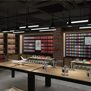 Retail shop: The MOQ is that we make all shop display (Cashier desk, Gondola, display tables, wall display shelving, etc) for a whole shop which is no less than 50 sqm;
